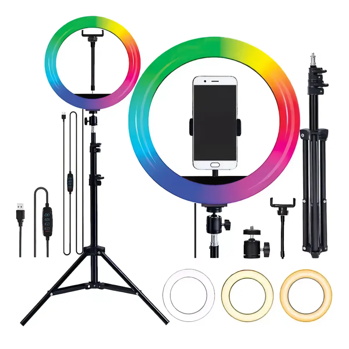 Modelo / Numero de parte: 83054 EAN / UPC: 0723540564305 Codigo AndesPC: 0309007 Descripcion del producto: Anillo Aro de luz Led RGB LED-83054. Iluminacion para fotografia con conexion USB. Con anclajes para camaras compactas, Smartphones Ideal para uso en estudio, transmision en vivo. Tripode extensible de hasta 2 metros de alto. - Soporte para celular incluido - Diametro: 30cm - Material: ABS ecologico - Temperatura de Color: 3000K-6000K - Voltaje de entrada: 5V - Frecuencia: 50-60HZ - Lumenes: 1000LM - Interfaz: USB - Tripode extensible de hasta 2 metros de alto - Altura minima 75 cms y maxima 2,1 Mts - Con rosca 3mm universal de camaras. - EAN: 0723540564305 |