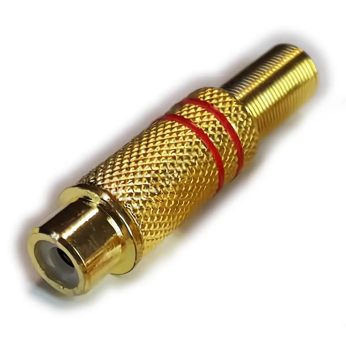 Modelo / Numero de parte: H-RCA1/R EAN / UPC: No disponible Codigo AndesPC: 1211051 Descripcion del producto: - Tipo: RCA. - Genero: Hembra (jack). - Configuracion: Monoaural (2 polos). - Material funda: Metal. - Color funda: Dorada. - Color aro identificacion: Rojo. - Conexion: Para soldar. - Montaje: A cable (6 mm diam. maximo). - Salida cable: Recto. - Tension max. de trabajo: 12 V Box 5 |