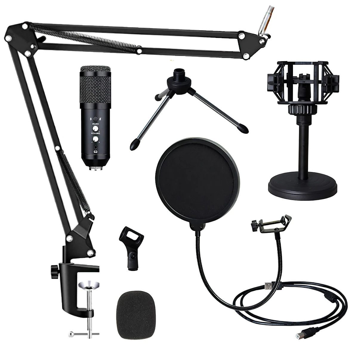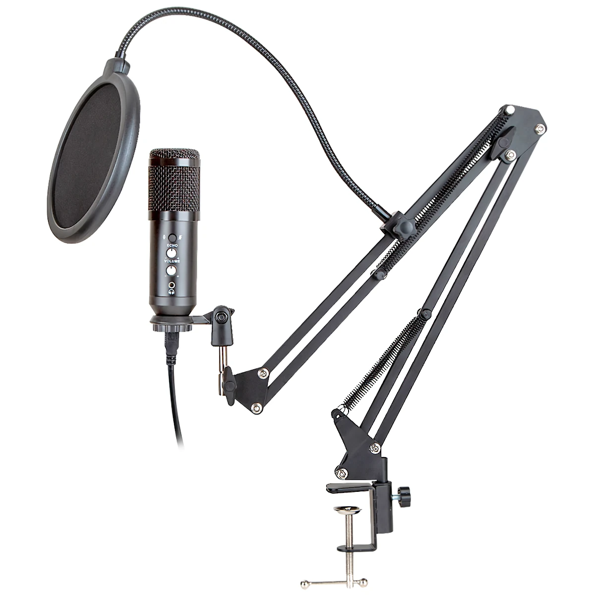 Modelo / Numero de parte: NSMICG5 EAN / UPC: No disponible Codigo AndesPC: 1005004 Descripcion del producto: Microfono USB con tripode + base escritorio + brazo metalico + soporte antivibracion. Caracteristicas principales - Control volumen y eco. - Boton silenciar. - Salida auricular 3.5mm p/monitor. - Cardioide. - Frecuencia respuesta: 20Hz-20kHz. - Sensibilidad: -34dB. - Nivel de ruido: 16 dBA. - Impedancia salida: 150 ohm (a 1kHz). - Impedancia carga: = 1000 ohm. - Corriente: 3 mA. - Longitud del cable USB: 1.5 m. - Tamano: 40 x 16 x 9 cm. Contenido del paquete :. 1x Microfono + Cable USB. 1x Soporte antivibracion. 1x Brazo metalico plegable + Soporte tripode. 1x Filtro anti pop + Espuma anti pop |