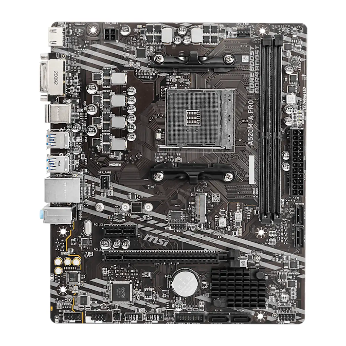Modelo / Numero de parte: A520M-A PRO EAN / UPC: 4719072749927 Codigo AndesPC: 0206015 Descripcion del producto: La Serie PRO ayuda a los usuarios a trabajar de manera mas inteligente, al ofrecer una experiencia eficiente y productiva. - Socket AM4 - Chipset AMD Chipset A520 - Modelo A520M-A PRO - Factor de Forma Micro ATX - Overclock Desbloqueado NO - Tipo de Memoria RAM DDR4 - Factor de Forma de Memoria RAM UDIMM - Cantidad de Slots de Memoria RAM 2 - Cantidad Maxima de Memoria RAM 64GB - Cantidad Maxima Memoria RAM 64GB - Velocidad Maxima de Memoria RAM 3200MHz - Velocidad Maxima Memoria RAM 3200MHz - Canales de Memoria RAM Dual Channel - Version de PCI Express PCIe 3.0 - Soporte Multi-GPU NO - Cantidad de PCI Express Totales 2 - Version de Puerto SATA SATA 3.0 - Cantidad de Puertos SATA 4 - Version de Puerto M.2 Socket 3 - Factor de Forma de Puerto M.2 2242/ 2260 /2280 - Interfaz de Conexion M.2 SATA/PCIe 3.0 - Cantidad de Puertos M.2 1 - Soporte RAID RAID 0 - RAID 1 - RAID 10 - LAN SI - WIFI NO - BLUETOOTH NO - Chipset de Audio Realtek ALC892/ALC897 Codec - PUERTOS USB TIPO A 6 - Puertos USB TIPO C 0 - Puertos DISPLAY-PORT 0 - Puertos HDMI 1 - Puertos VGA 0 - Puertos DVI-D 1 - Puertos DVI-I 0 - FLASH BIOS BUTTON NO - Canales de Audio 7.1 - Iluminacion NO - EAN: 4719072749927 |