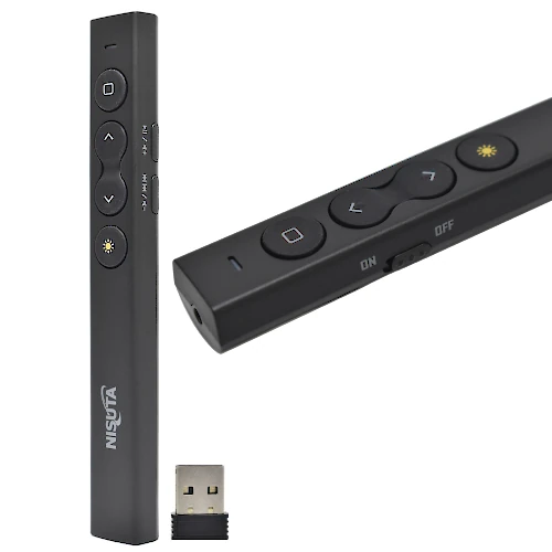 Modelo / Numero de parte: NSWIPR2 EAN / UPC: No disponible Codigo AndesPC: 1111007 Descripcion del producto: Presentador wireless USB con puntero laser marca Nisuta modelo WIPR2 Caracteristicas principales - Ideal para hacer presentaciones en PPT - Distancia del control: 100 metros - Distancia del laser: 200 metros - Con laser rojo - Funciona con frecuencia RF 2.4GHZ - Funciona con una pila AAA (no incluida) - Receptor nano USB AM compatible con: USB1.1/2.0/3.0 - Tamano del producto 185x14x6mm - Enchufe y utilice, no necesita driver - Compatible con: Windows, Mac OS, Android y Linux - EAN: |