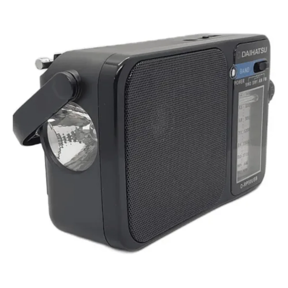 Modelo / Numero de parte: D-RP50 EAN / UPC: 7798019951675 Codigo AndesPC: 0309004 Descripcion del producto: Radio AM/FM/SW con carga por USB. Caracteristicas principales Marca Daihatsu. Modelo D-RP50. Color Negro. Tipo de alimentacion PILA y/o BATERIA RECARGABLE (con cargador del tipo celular, no incluido). Tipo de radio Analogico. Formatos soportados AM, FM, LUZ, RECARGABLE, Usb. Bandas sintonizadas AM, FM. Banda de frecuencia FM 87-108. Banda de frecuencia AM 522-1710. Ancho 17,5 cm. Altura 10 cm. Profundidad 6 cm. Con puerto USB No. Con entrada para tarjeta SD No. Con pantalla digital No. Tipo de pantalla Analogica. Con linterna Si. EAN: 7798019951675 |