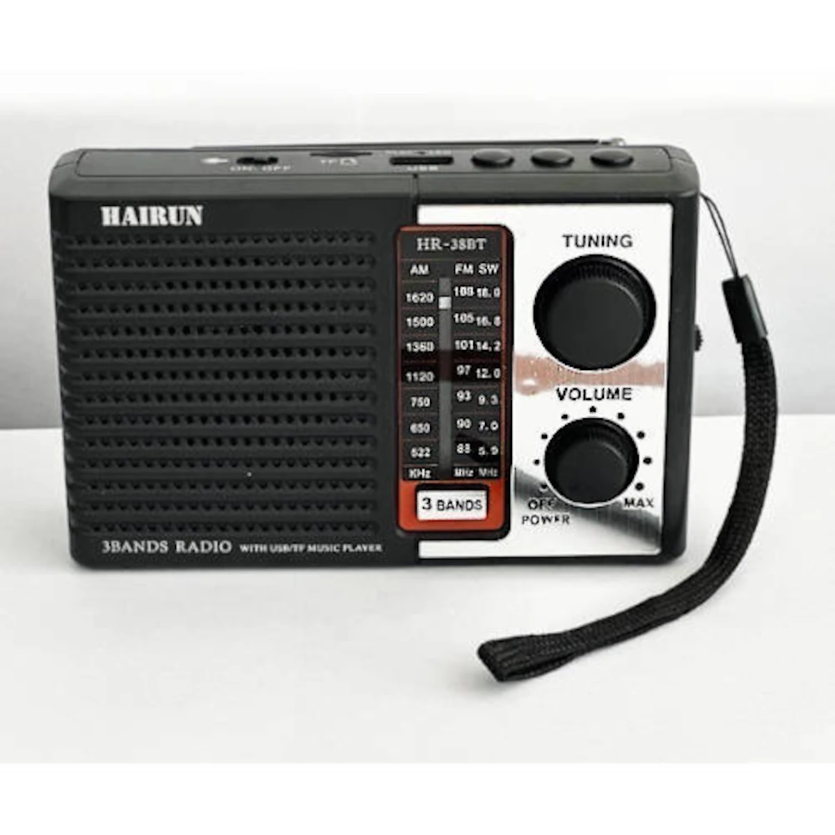 Modelo / Numero de parte: RAD-01 EAN / UPC: No disponible Codigo AndesPC: 0309005 Descripcion del producto: Radio AM/FM con carga por USB + bluetooth. - Marca Hairun. Color Negro. - Sintonizador AM / FM / SW. - Bluetooth. - Con linterna Si. - Dimensiones: 15 x 9,5 x 4,5 cm. - Entrada para pendrive para reproducir MP3. - Entrada para tarjeta SD para reproducir MP3. - Unico control para ajustar volumen, apagar y encender. - Antena telescopica de 50 cm. - Incluye cable de carga y correa de mano. - Bateria recargable por cargador USB (no incluido) |