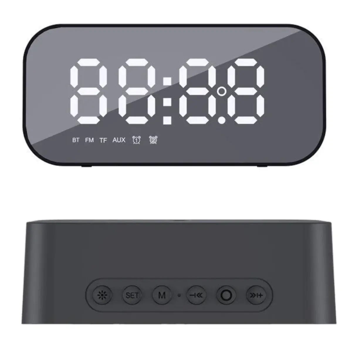 Modelo / Numero de parte: HVSPK-M3-BK EAN / UPC: No disponible Codigo AndesPC: 0309031 Descripcion del producto: RADIO RELOJ + PARLANTE BLUETOOTH + DESPERTADOR + RADIO FM El Havit M3 modelo HV-SPK-M3 es un dispositivo multifuncion que combina radio, parlante Bluetooth y reloj despertador digital. Cuenta con una pantalla frontal con acabado tipo espejo que muestra la hora y la temperatura ambiente. El brillo es ajustable en 3 niveles. Funciones 1) Parlante Bluetooth 5.0 2) Radio FM 3) Reloj Despertador 4) Reproductor de Musica mediante tarjeta Micro SD o entrada AUX 5) Termometro Caracteristicas principales: - Version Bluetooth: 5.0 (alcance de 10 metros). - Potencia de Salida: 3 W - Pantalla LED de espejo - Bateria recargable: entre 4 y 6 horas de reproduccion. - Tiempo de Carga: Cerca de 2 horas mediante cable Micro USB. - Manos Libres: con microfono para atender llamadas telefonicas. - Dimensiones: 145 x 68,5 x 54,5 mm - Peso: 315 gramos. (Idem Codigo 1003038 y 0304032) |
