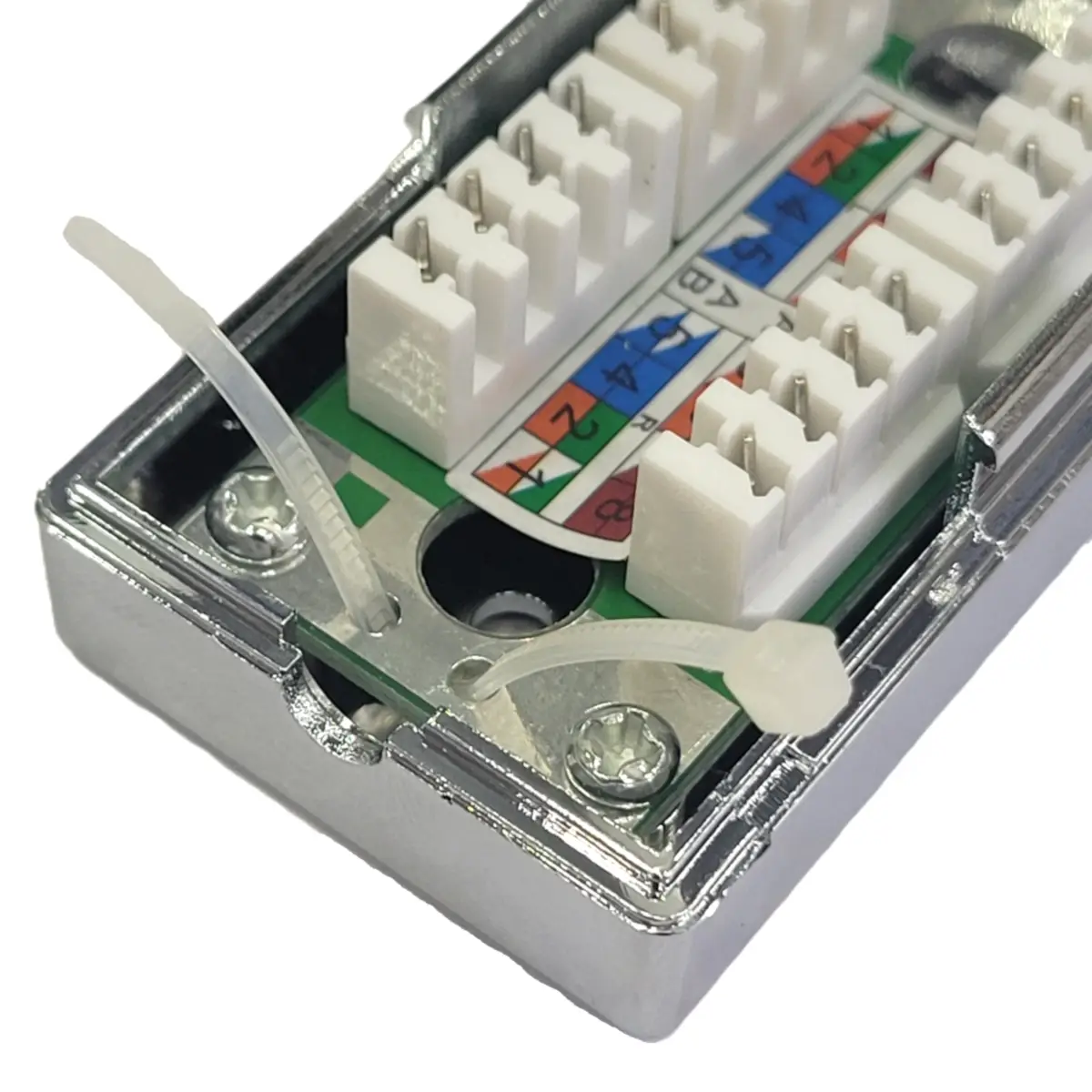 Modelo / Numero de parte: N-120-07 EAN / UPC: No disponible Codigo AndesPC: 0504020 Descripcion del producto: Caja de conexion Categoria 5e. Para conectar, reparar o extender cable CAT 5e. Para montaje en interior. NOTA: Como conectar El empalme es del tipo cable a cable. En la parte de arriba, al lado de cada terminal, figura el nnumero y color del cable que se debe conectar en ese terminal. Por ejemplo 1 (blanco-verde -orden T568A- / blanco-naranja -orden T568B-), etc... Cada numero (color) figura dos veces. Uno de ellos corresponde al cable que entra y el otro al cable que sale. Se debe de conectar el hilo blanco-verde (si usa el tipo de orden A) del cable que entra en uno de los terminales nro. 1 y el hilo blanco-verde del cable que sale en el otro terminal con ese mismo numero. La herramienta correcta para fijar cada hilo, es la pinza de impacto de redes. |