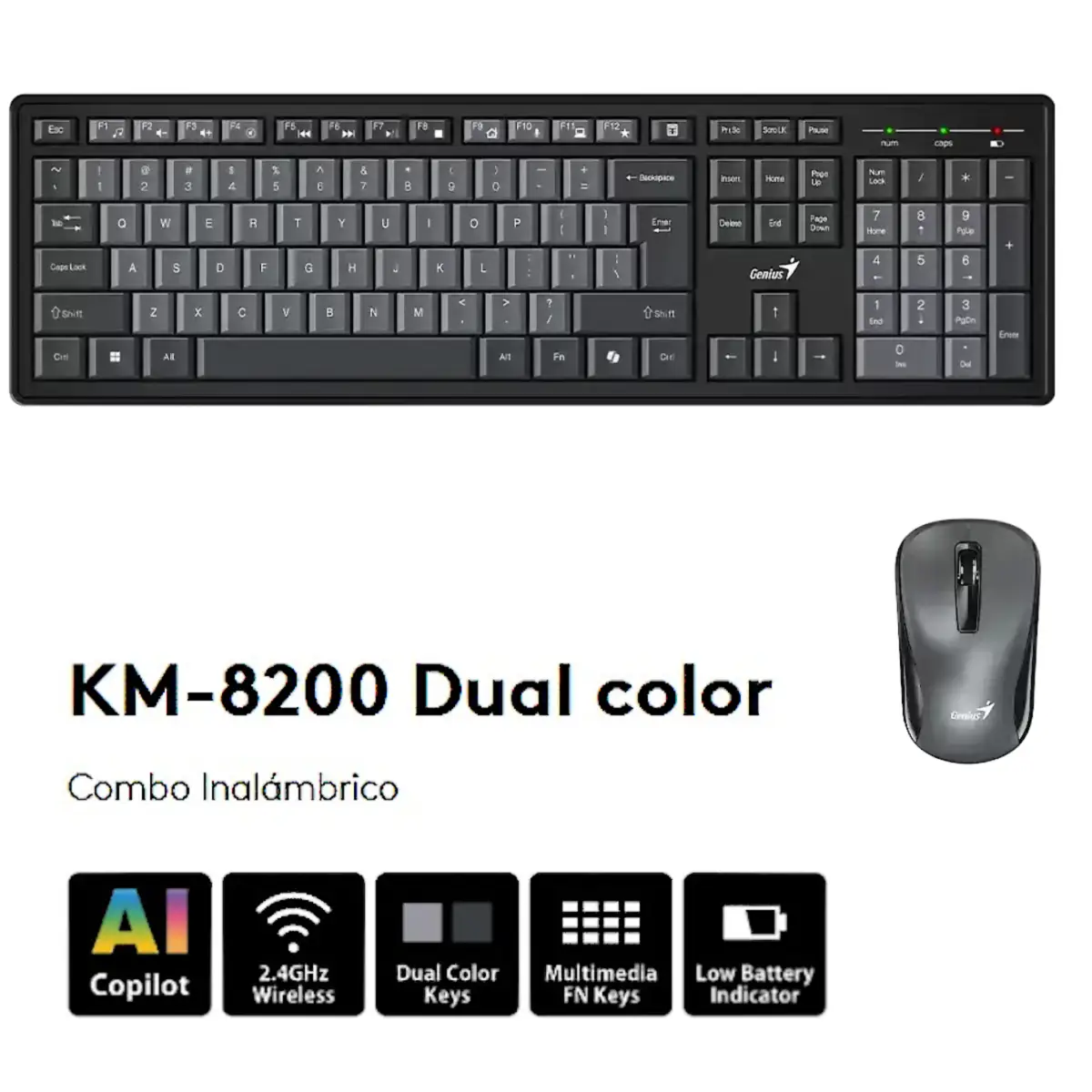 Modelo / Numero de parte: KM-8200 EAN / UPC: 4710268256199 Codigo AndesPC: 1103037 Descripcion del producto: Es un teclado personalizable. Junto con el Motor Inteligente Genius, proporciona un control completo de las 12 teclas de funcion exclusivas para web, aplicaciones, redes sociales o integracion de negocios. Caracteristicas principales Frecuencia RF 2.4 GHz. Teclas de Funcion Personalizables F1 a F12. Soporte SmartGenius Si, descarga de la aplicacion SmartGenius en:Download. Barra Virtual de Teclas de Funcion Si. Soporte de Perfil de Aplicaciones Si. Teclas de funcion Si. Unidad de sensor (Mouse) optico. Mouse Resolucion (DPI) 1000. Cantidad de botones del mouse Tres (izquierda, derecha y central con desplazamiento). Dos baterias AAA para el teclado. Una AA para el mouse. Dimensiones (A x A x P). Teclado: 446.40 x 133.31 x 23.25 mm (17.57 x 5.25 x 0.92 pulgadas). Mouse: 97 x 55 x 35 mm (3.82 x 2.17 x 1.38 pulgadas). Compatible con sistema operativo Windows 7 o superior y Mac OS X 10.8 o superior. EAN: 4710268256199 |