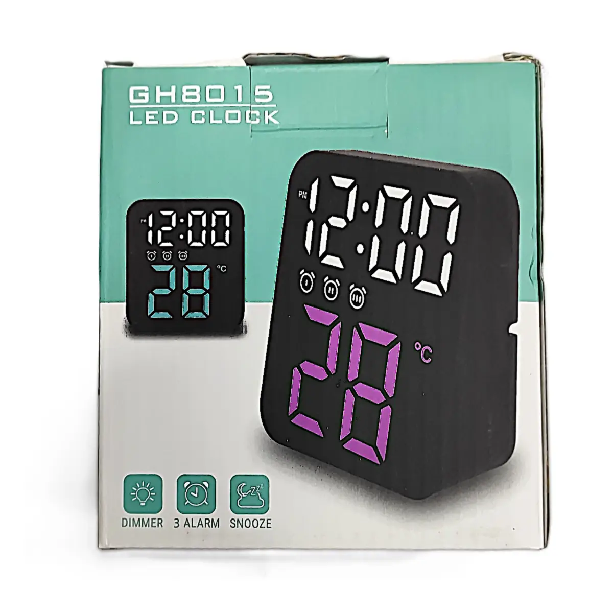 Modelo / Numero de parte: GH-8015 EAN / UPC: No disponible Codigo AndesPC: 0304033 Descripcion del producto: Reloj despertador digital con numero grandes, 12/24 hs con tres alarmas con snooze y medidor de temperatura en grados celcius/farenhait. Funciona con 3 pilas AAA (no incluidas) para mantener la hora. Con apagado de luz automatico y encendido por contacto. Alimentacion por USB (5vcc) para mantener encendida la luz permanente. Cable de 1 mts incluido. Color de reloj: Negro Color de led de Hora: blanco Color de led de temperatura: cyan Ean: 6941326980154 |