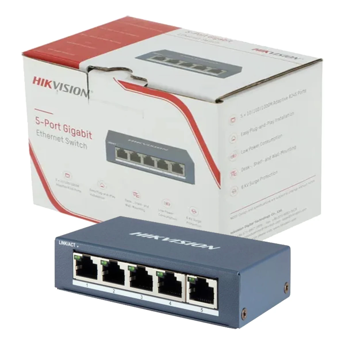 Modelo / Numero de parte: DS-3E0505-O EAN / UPC: 6942160428970 Codigo AndesPC: 0508001 Descripcion del producto: Switch de escritorio de 5 puertos Gigabit marca Hikvision modelo DS-3E0505-O Caracteristicas principales - Montaje: Escritorio / pared. - 5 x Gigabit RJ45 ports. - 1000M network access. - Wire-speed forwarding and non-blocking design. - Store-and-forward switching. - Solid high-strength metal shell. - Fan-free design with high reliabilit. - Dimensiones: 105 x 27,6 x 83,1 mm. - EAN: 6942160428970 | Sin stock Volver |