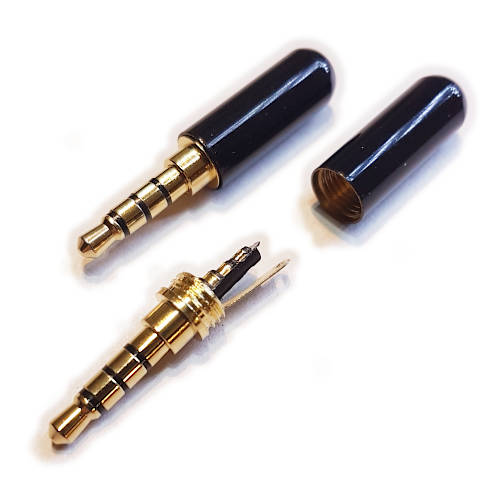 - Tipo: Miniplug 3,5 mm. - Genero: Macho (plug). - Configuracion: Tetrapolar (4 Polos) (TRRS). - Material funda: Metal. - Color funda: Negro. - Conexion: Para soldar. - Montaje: A cable (4 y 6 mm diam.). - Salida cable: Recto. - Tension max. de trabajo ... mas detalles |