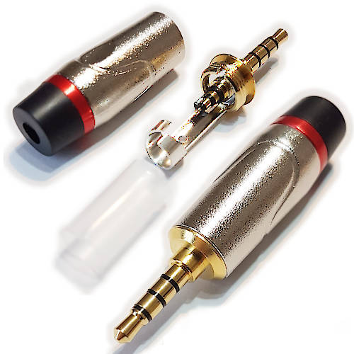 - Tipo: Miniplug 3,5 mm. - Genero: Macho (plug). - Configuracion: Tetrapolar (4 Polos) (TRRS). - Material funda: Metal. - Color funda: Rojo. - Conexion: Para soldar. - Montaje: A cable (4 mm diam. maximo). - Salida cable: Recto. - Cuerpo compacto: 7mm ... mas detalles |