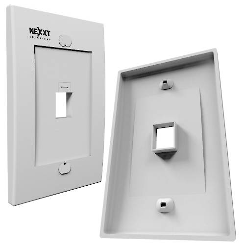 | Placa de pared 1 puerto para conectores RJ45 Caracteristicas principales - Part Number: AWA160NXT01 - Material Policarbonato UL 94V-0 - Marco tipo Keystone - EAN: 798302032620 ... mas |